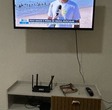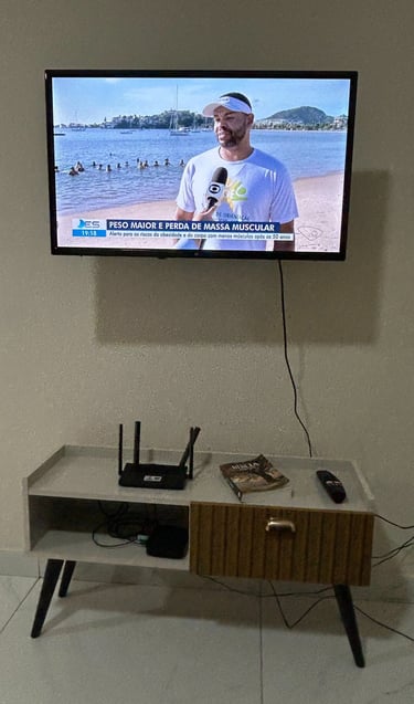SMART TV com 60 canais, inclusive Globo, SBT, BAND e RECORD do Espírito Santo.