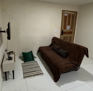 Ao chegar no endereço, você verá uma casa de 2 andares com número 598. À esquerda tem uma escada. Suba nela. É a 1ª porta à direita.